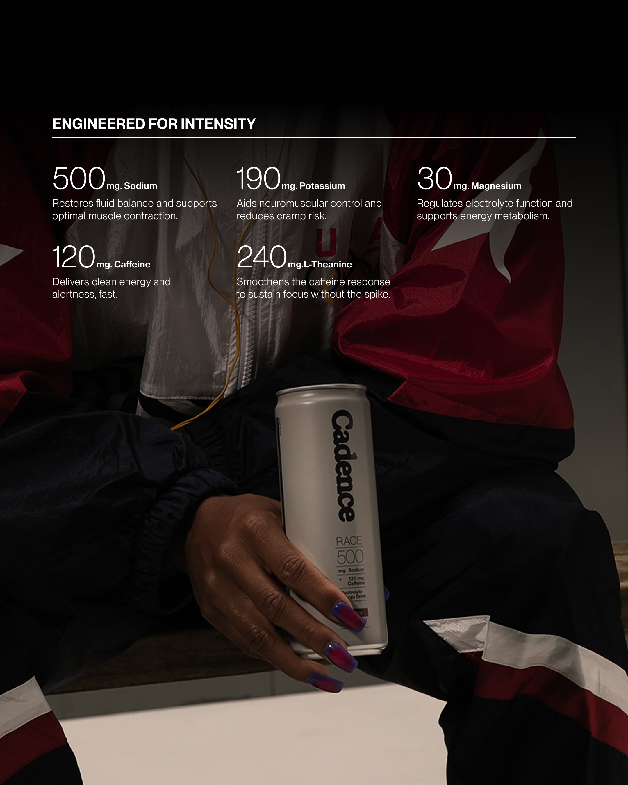 Sodium plays a pivotal role in hydration. It increases fluid absorption, fluid retention, maintains electrolyte balance and stimulates thirst, thus increasing fluid intake. Research shows that drinks containing sodium can improve endurance, mood, and reaction times, whilst reducing the risk of cramps and hyponatremia.
