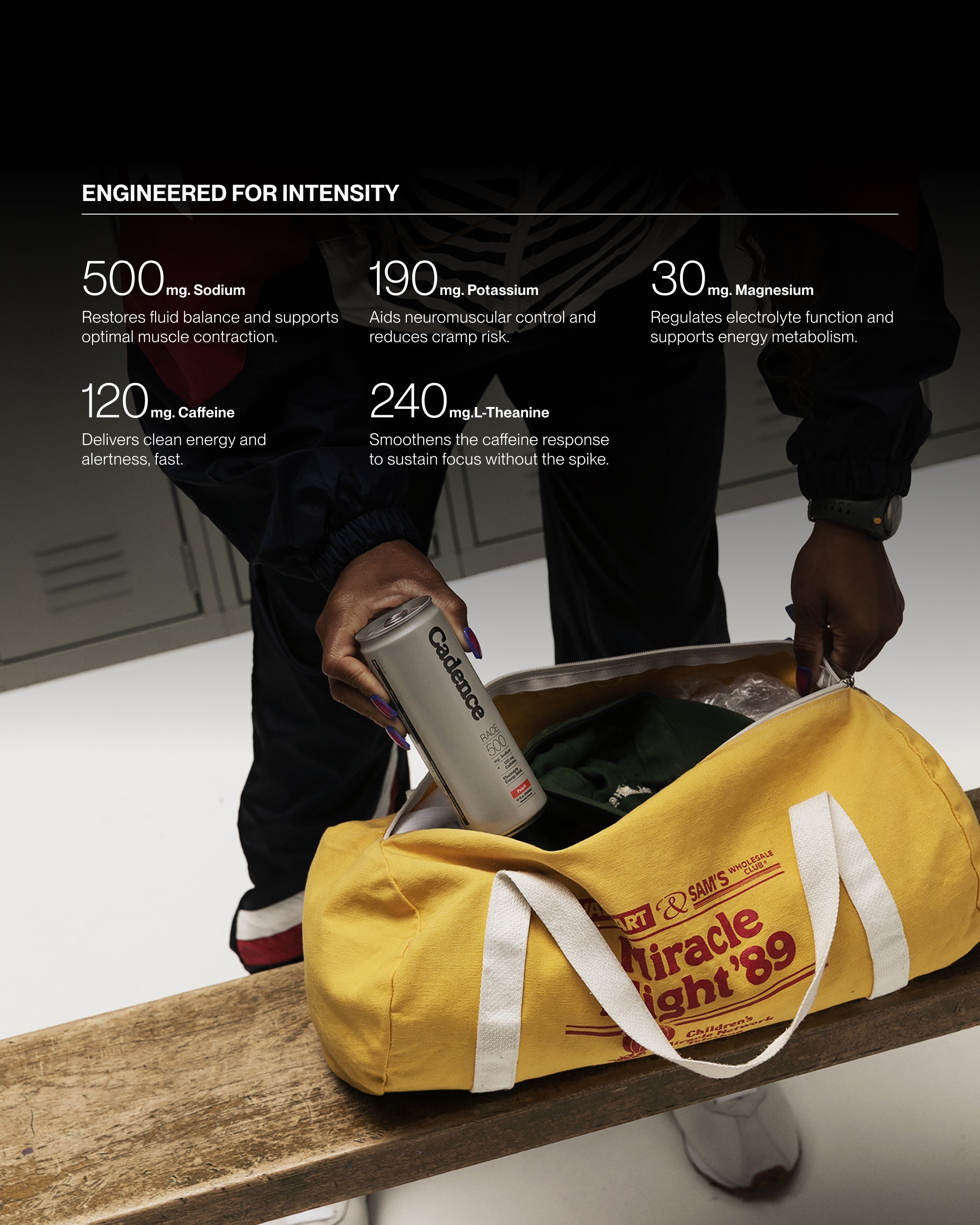 Each can delivers our core electrolyte blend (500mg sodium, 190mg potassium, 30mg magnesium) to optimise hydration.